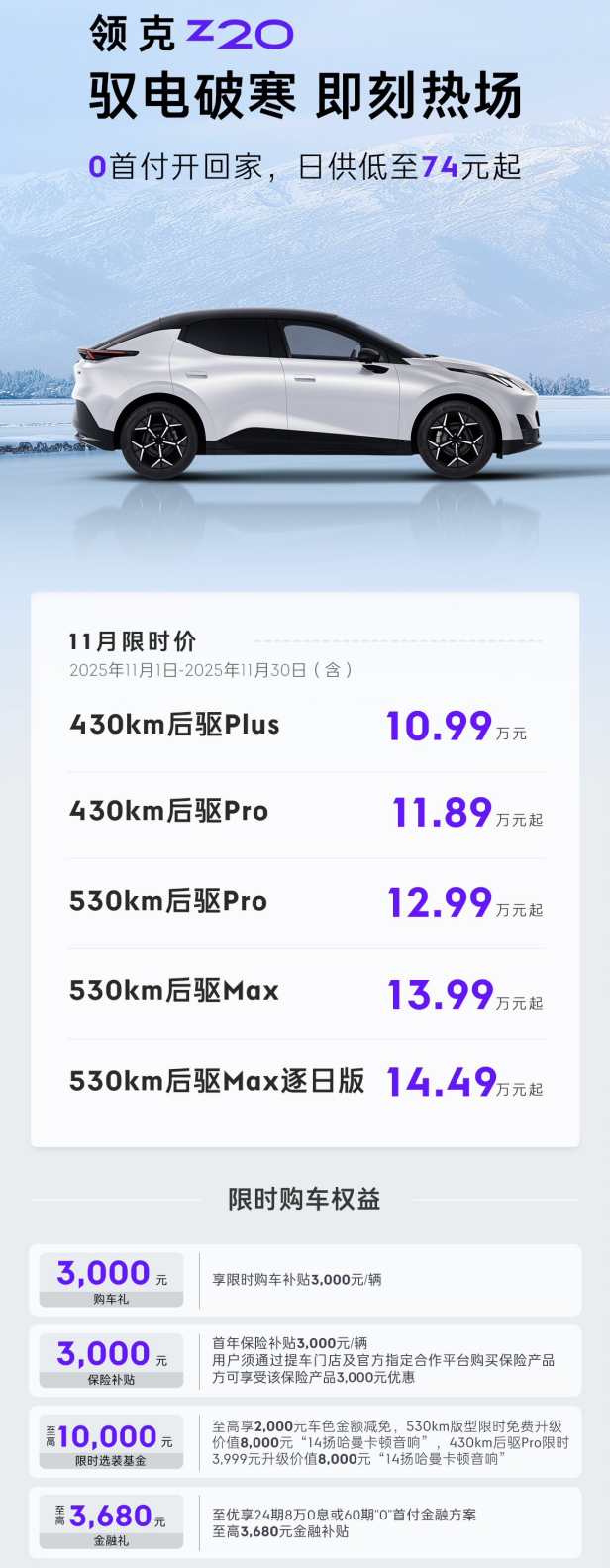 结合银色新车色的发布,领克推出的11月限时购车权益(包括3000元购车礼与保险补贴、至高1万元选装基金及至高3680元金融补贴),为体验这款具有前瞻性设计的车型创造了更有利的条件。这些权益切实降低了拥有门槛,让科技与美学的结合变得触手可及。